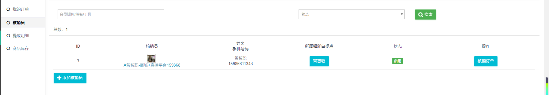 自提点信息-我的订单-核销员-提成明细-商品库存