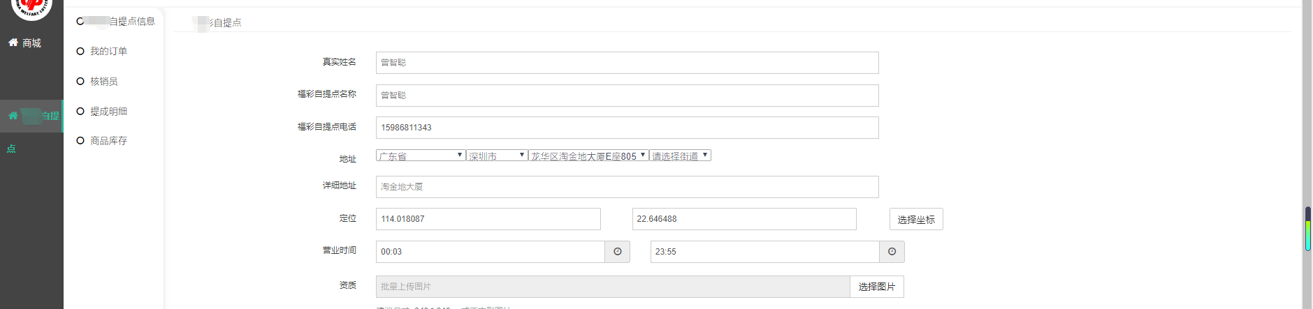 进入“我的信息”,查看与编辑自提点信息